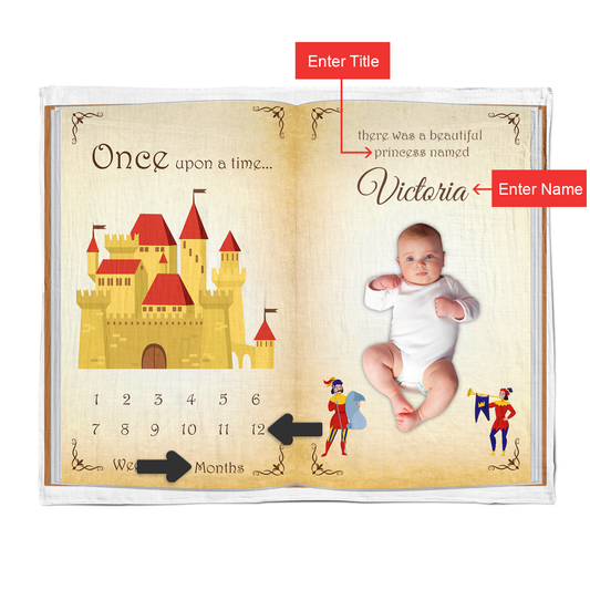 Personalized Endanzoo Baby Monthly Milestone Muslin Swaddle Storybook Blanket (Prince or Princess in the Royal Castle)