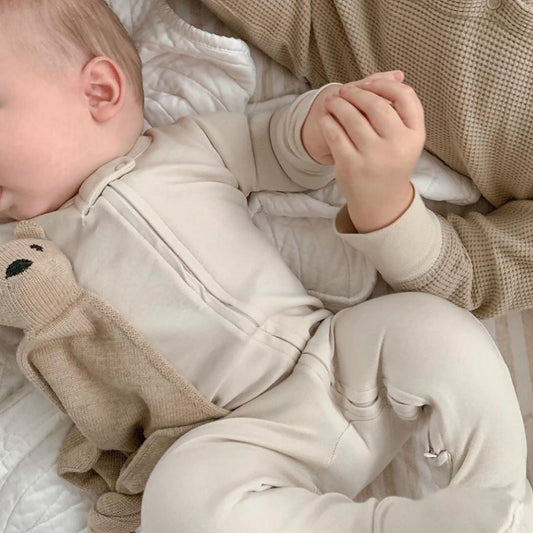 L'ovedbaby Gl'oved-Sleeve Organic Jumpsuit / Footie - Reversed Zipper / Stone
