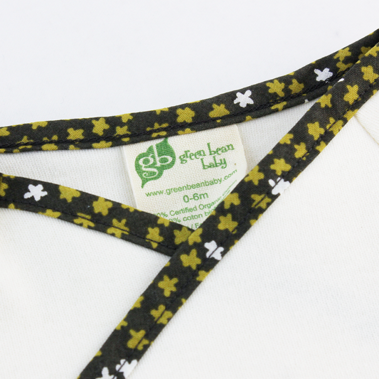 Green Bean Baby Organic Kimono Shirt with Earth Leaves Trim