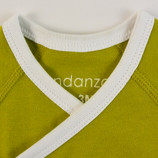 Green Bean Baby Organic Kimono Shirt with Earth Leaves Trim