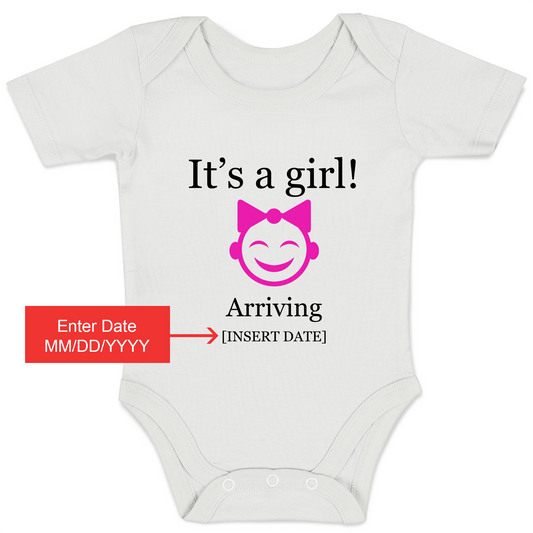 [Personalized] Endanzoo Gender Baby Reveal Organic Baby Bodysuit - It's a GIRL