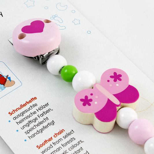 Heimess Wooden Pacifier Clips - Soother Chain Pink Butterfly