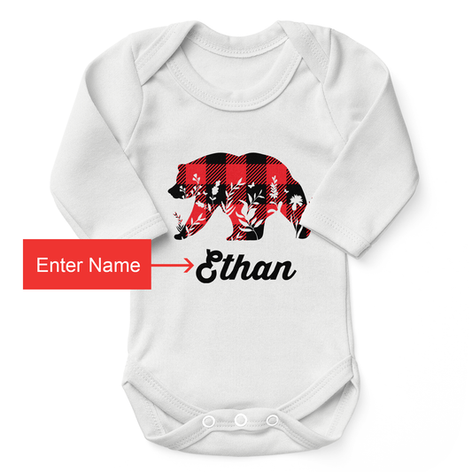 Personalized Organic Baby Bodysuit - Baby Bear (White)