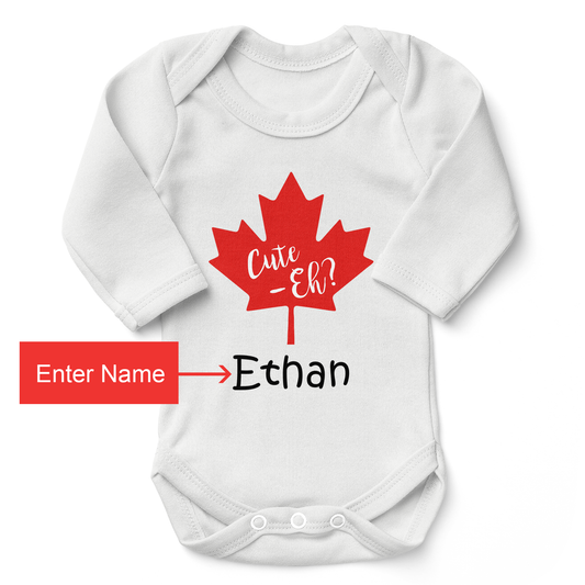 Personalized Organic Baby Bodysuit - Cute Eh (White)