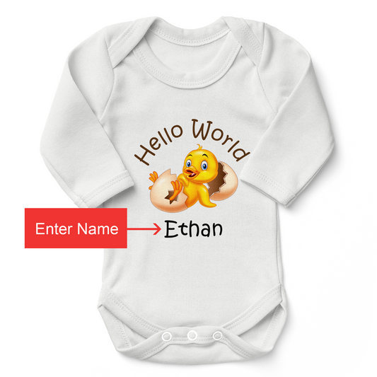 Personalized Organic Baby Bodysuit - Hello World (White)