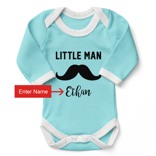 Personalized Organic Baby Bodysuit - Little Man (Aqua)