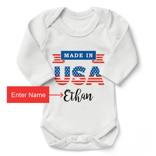 Personalized Organic Baby Bodysuit - Made in U.S.A (White)