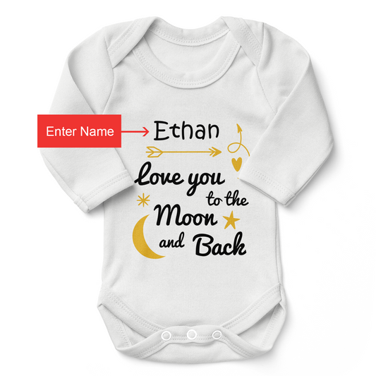Personalized Organic Baby Bodysuit - Love You To The Moon & Back (White)