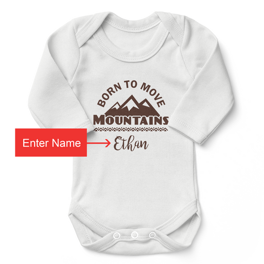 Personalized Organic Baby Bodysuit - Born To Move Mountains (White)