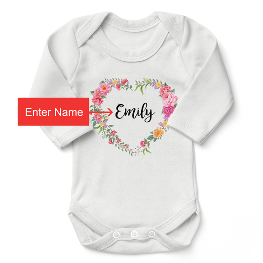 Personalized Organic Baby Bodysuit - Floral Love (White)