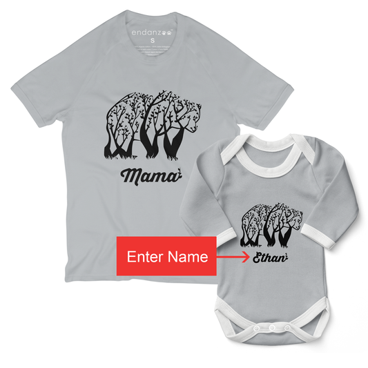 Personalized Matching Mom & Baby Organic Outfits - Tree Bear (Grey)