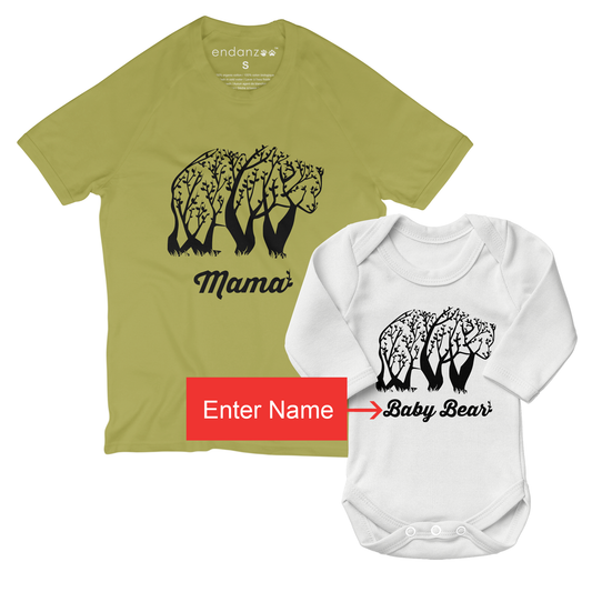 Personalized Matching Mom & Baby Organic Outfits - Tree Bear (Green)