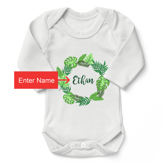 Personalized Organic Baby Bodysuit - Tropical Leaves (White)
