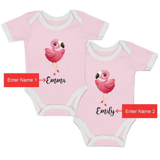 Personalized Organic Baby Bodysuit Set - TWIN Flamingos (Pink & Pink)