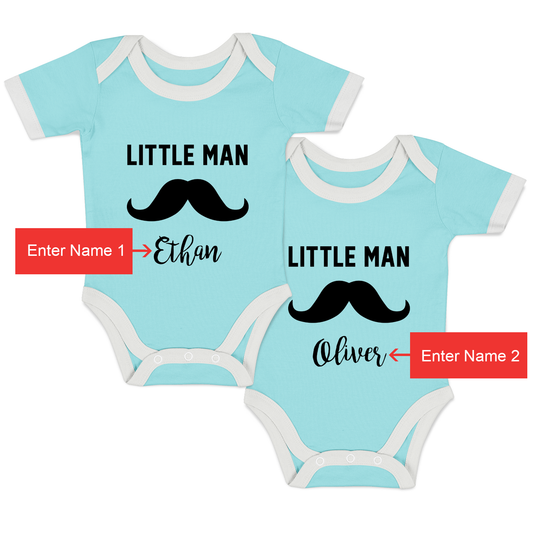 Personalized Organic Baby Bodysuit Set - TWIN Little Man (Aqua & Aqua)