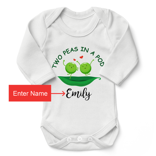 Personalized Organic Baby Bodysuit Set - Two Peas in a Pod (White & White)