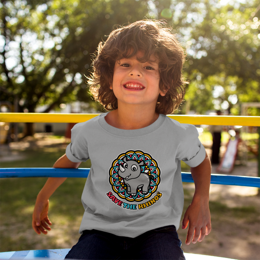 Endanzoo Organic Short Sleeve Kids Tee Shirt - Save the Rhinos