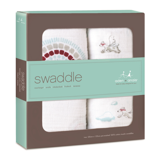 Aden Anais Classic Muslin Swaddle Blanket 2 Pack (Liam the Brave - Medallions and Flying Dog)