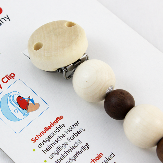 Heimess Wooden Pacifier Clip - Soother Chain Brown and Natural