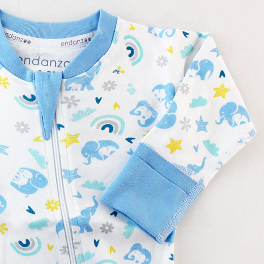 Endanzoo Organic Double Zippered Romper - Elephant Love