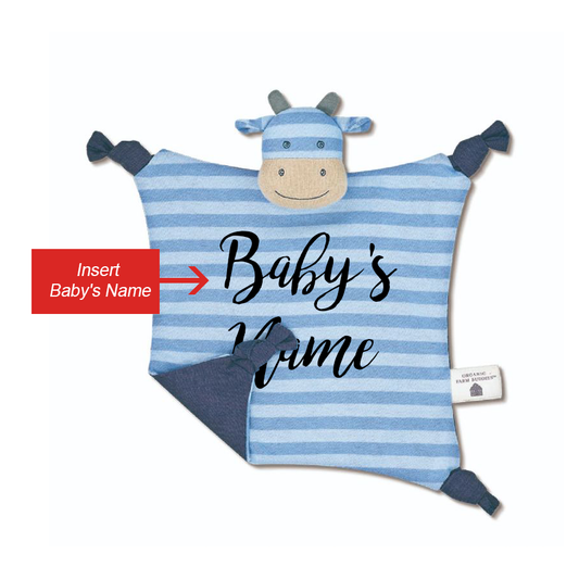 Wrapped with Muslin Swaddle Blanket (Blue Blossom) + Blankie Toy (Mr. Moo)
