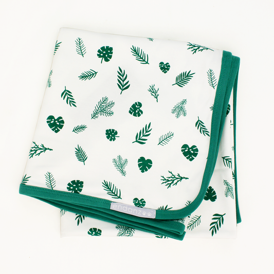 Wrapped with Endanzoo Organic Baby Swaddle Blanket - Tropical Leaves