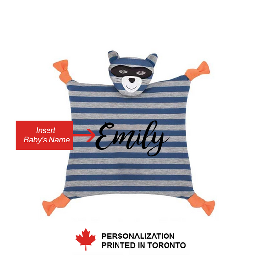 Wrapped with Muslin Swaddle Blanket (Blue Forest) + Blankie Toy (Robbie Raccoon)