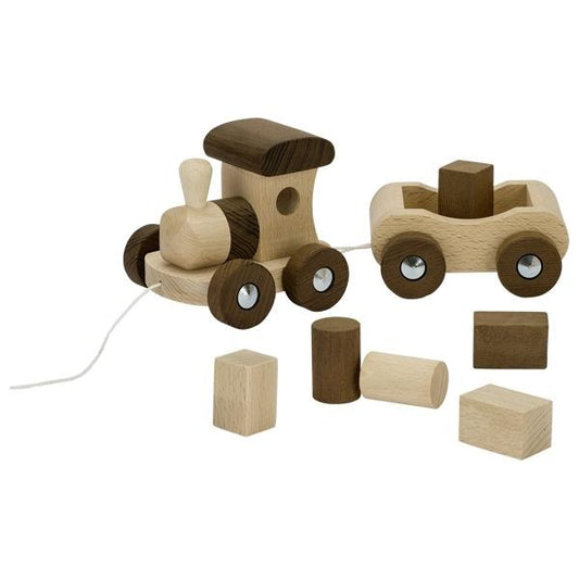 Goki Pull-Along Animal (Blue Dinosaur) + Wooden Picture Book (Little Bear)