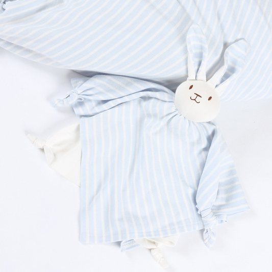 Under The Nile Organic Lovey Blanket Friend - Blue Stripe Bunny