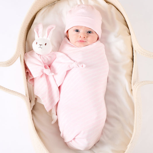 Under The Nile Organic Lovey Blanket Friend - Pink Stripe Bunny