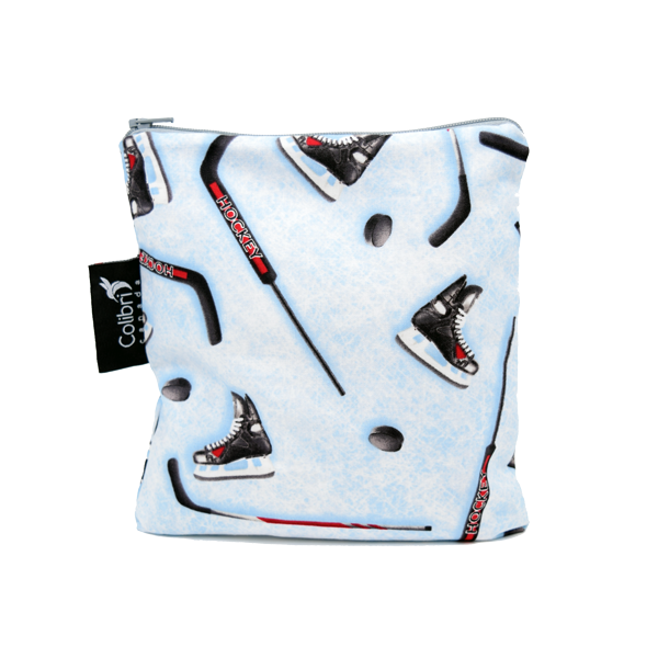 Made in Canada with 100% cotton outer, 100% polyester with polyurethane membrane liner (commonly known as PUL). YKK zippers that are lead and nickel free.