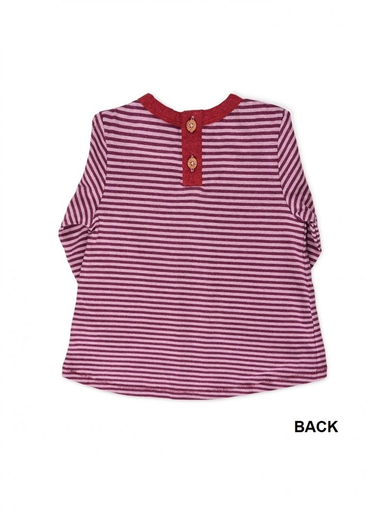 Our Sophie Swing Top is an all season favorite for baby girls! Constructed with the purest organic cotton, this long sleeve infant top has a superior softness that feels luxurious to the touch. The stylish a-line cut is complemented with a high-low hem and a center front pleat that adds a sweet girly touch. Accented by a functional back placket with coconut buttons and contrast stitching, this organic baby top is both playful and practical. The slight stretch of the single jersey knit ensures comfortable support, increased mobility, and hassle free outfit changes. This elevated top is extra cute paired with our baby leggings.