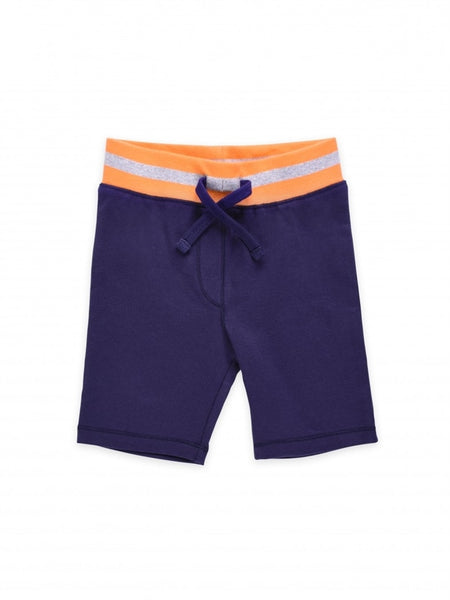 Perfect for warm summer days, our Varsity shorts provide a premium lightweight layer and breathable comfort for your baby boy. These attractive shorts highlight the superior softness and luxurious feel of their high quality organic cotton construction, while their elastic waistband and nonfunctioning twill drawstrings make them easy to take on and off. The stylish straight cut legs are hemmed with contrast stitching to complement and playfully accent the French Terry design. Made to provide stretchy comfort, these shorts are designed to fit well over a diaper and supply gentle support for increased mobility.