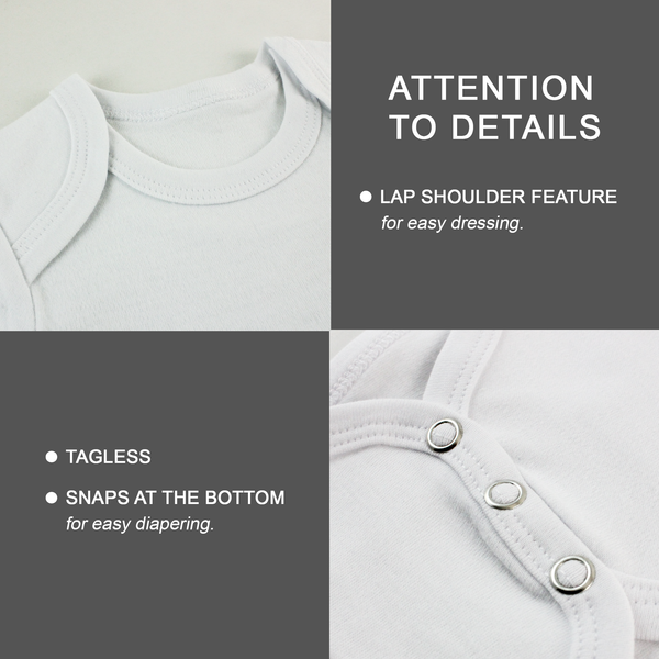 Our baby bodysuits are made to order and printed with eco-friendly water-based inks using state-of-the-art DTG printing method. The printing is sharp and does not fade after several washes. Great for photography time after time.
