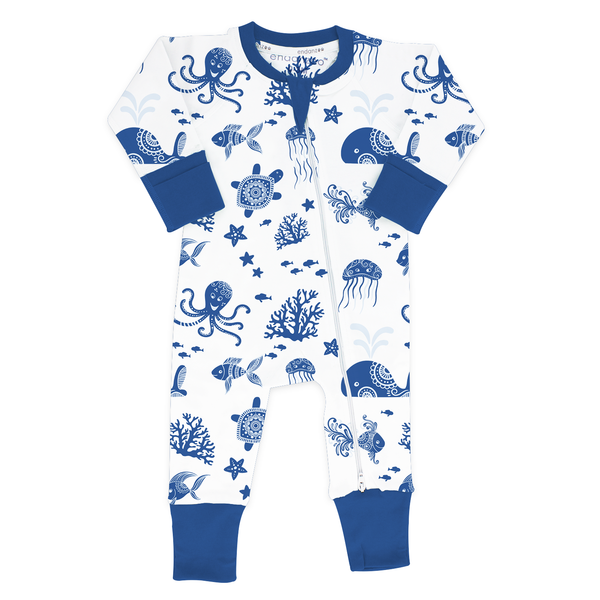 Endanzoo Organic Long Sleeve Double Zippered Romper - Deep Sea
