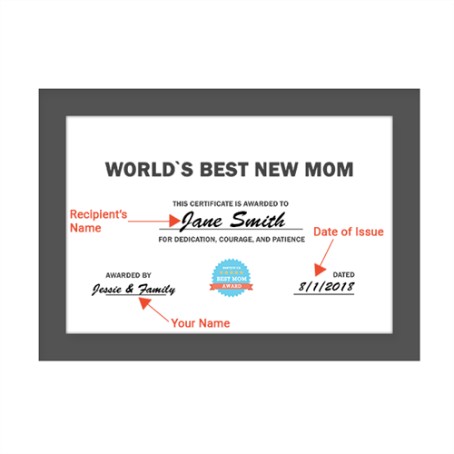 World's Best New Mom Award Certificate with Frame