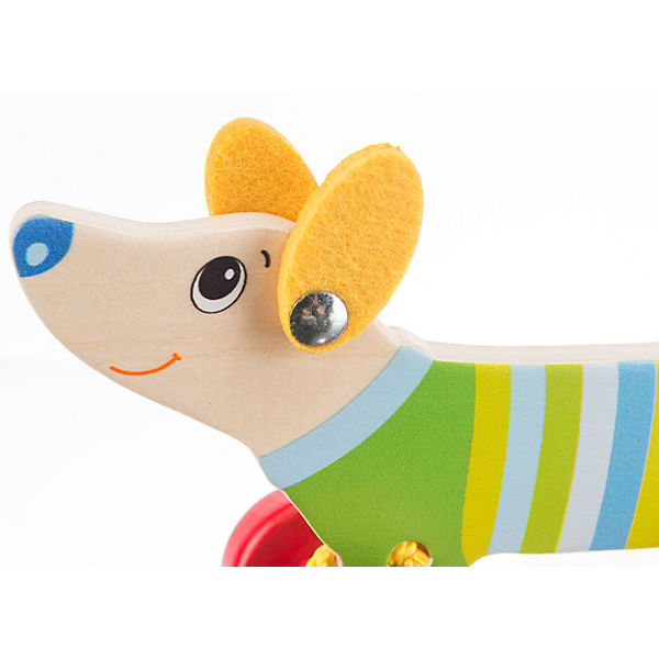 What's coming up? This adorable wooden pulling animal "dog" from goki definitely brings good mood moments! The cheerful wheels and the colorful striped look ensure fun and joy of movement. The sturdy cord can be easily gripped - this makes the walks even more fun. At the same time, motor skills are promoted and creative hiking moments are guaranteed.