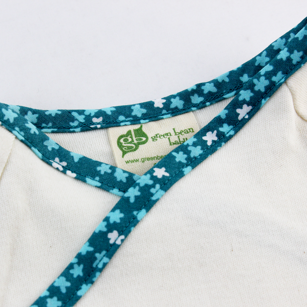 Green Bean Baby Organic Kimono Shirt with Ocean Leaves Trim