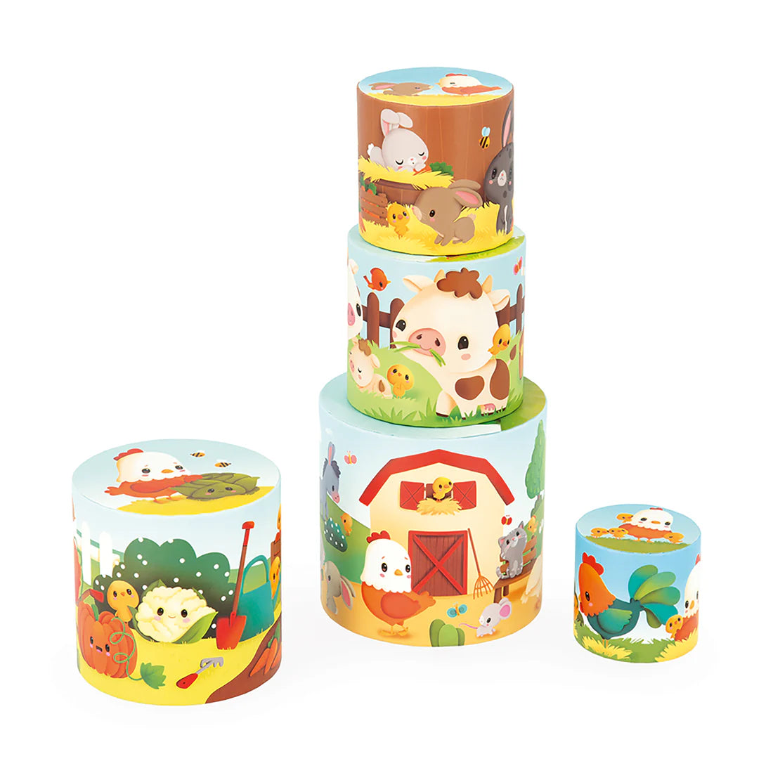 This set includes 5 illustrated wooden rings featuring adorable farm animals such as pigs, cows, rabbits, and chicks. A charming wooden hen figurine sits atop the pyramid, inviting children to engage in imaginative play. Each piece is beautifully decorated, encouraging visual recognition and vocabulary development. By stacking the rings, children enhance their fine motor skills and hand-eye coordination.