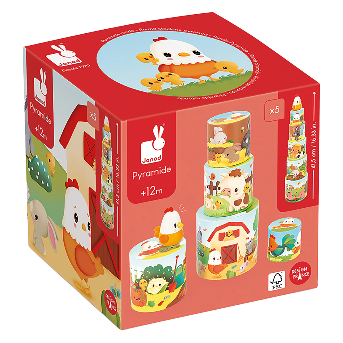 The Janod My First Hen Pyramid is a delightful wooden stacking toy designed for children aged 12 months and up.