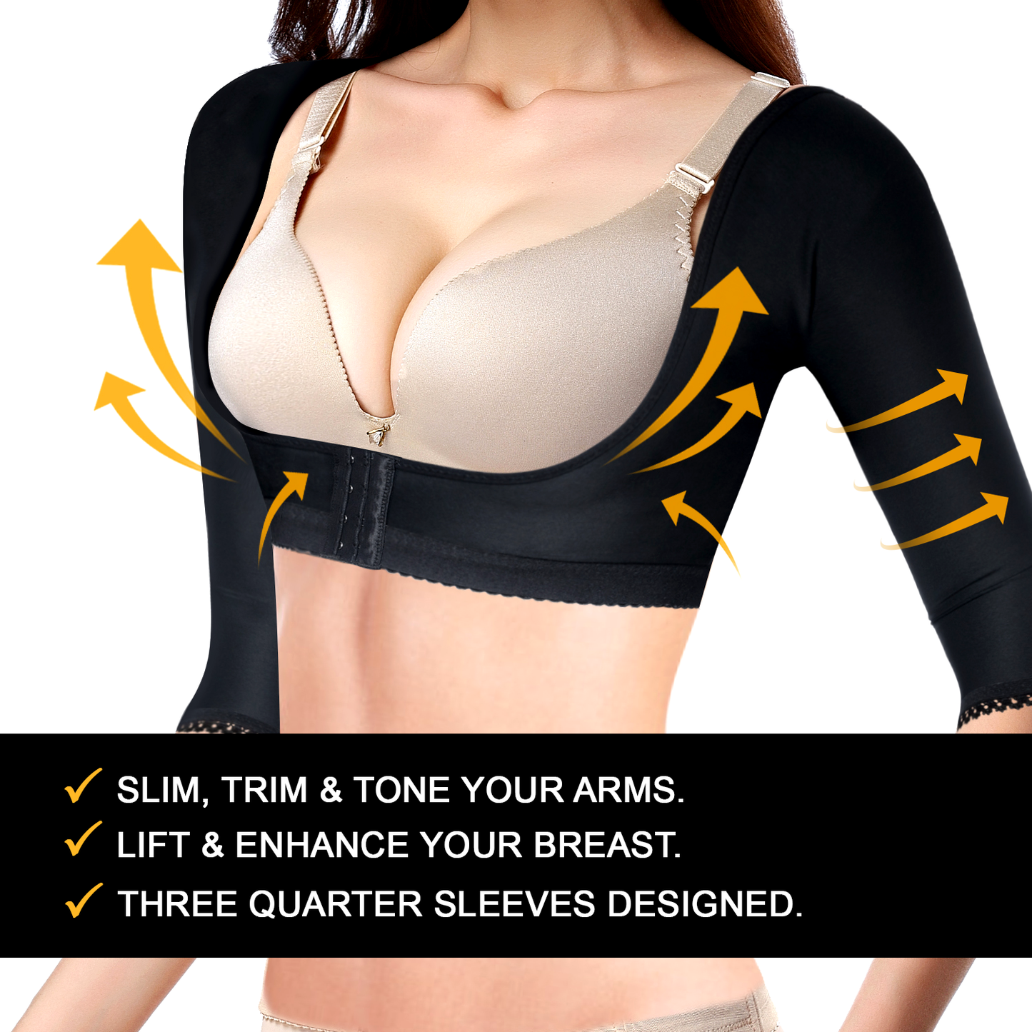 - THREE QUARTER SLEEVES DESIGNED: Helps to prevent the arm fat or flab being squeeze near your elbow. The post surgical compression garment is helpful to the women recovering from arm liposuction, lymphdema, lipedema, edema, or even weight loss surgery.