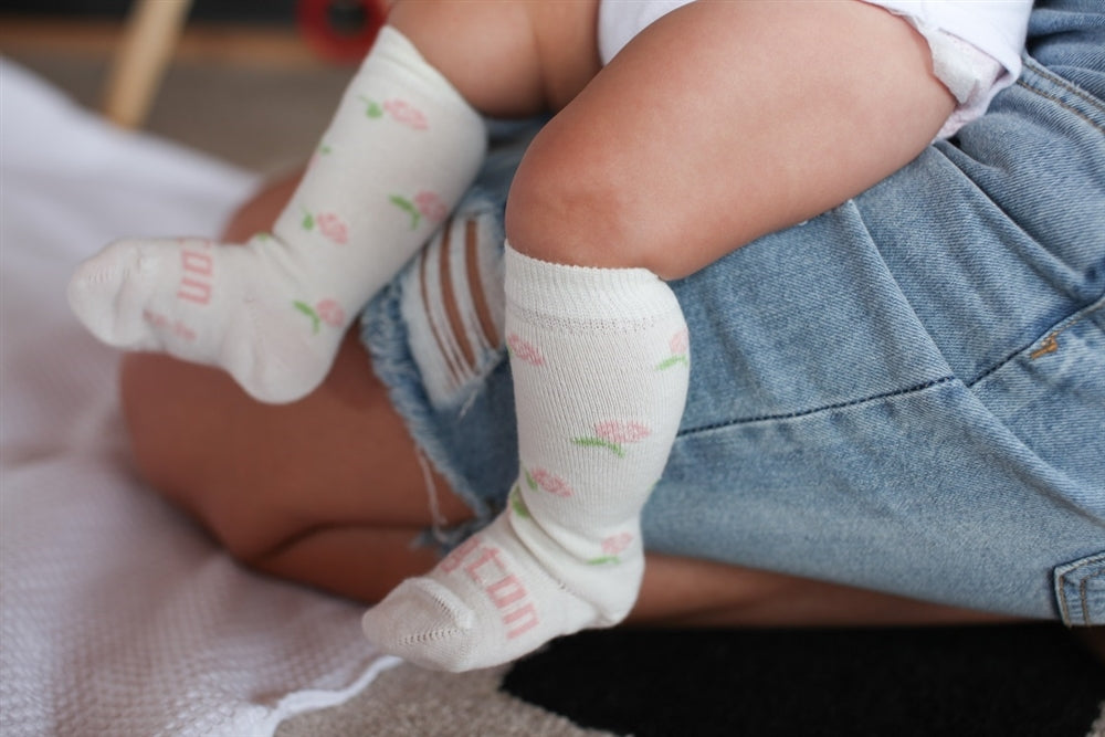 * Please note our baby sizes are a guideline only and are not a one size fits all. Babies come in all shapes and sizes. When trying new socks always place a finger between your baby’s skin and the band of the sock to make sure the items are not too tight.