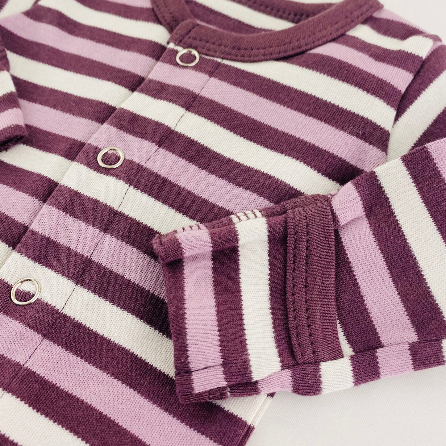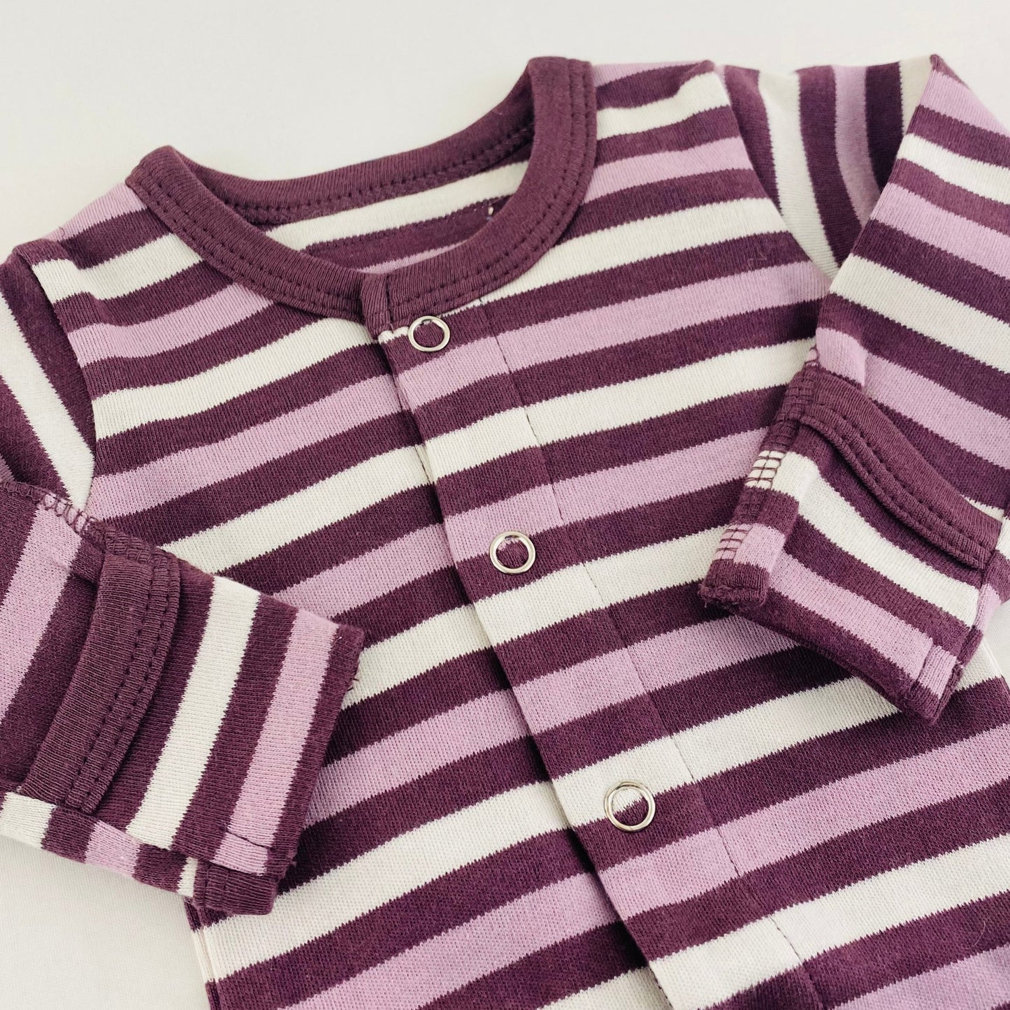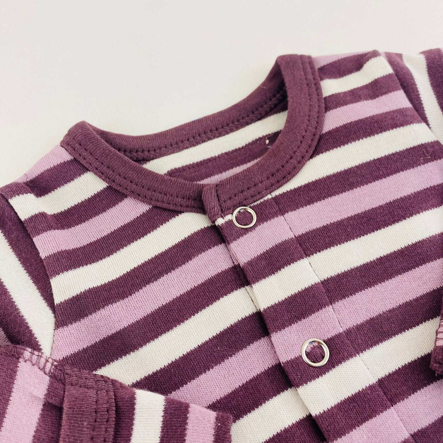 L'ovedbaby Gl'oved-Sleeve Organic Footie - Eggplant Stripe