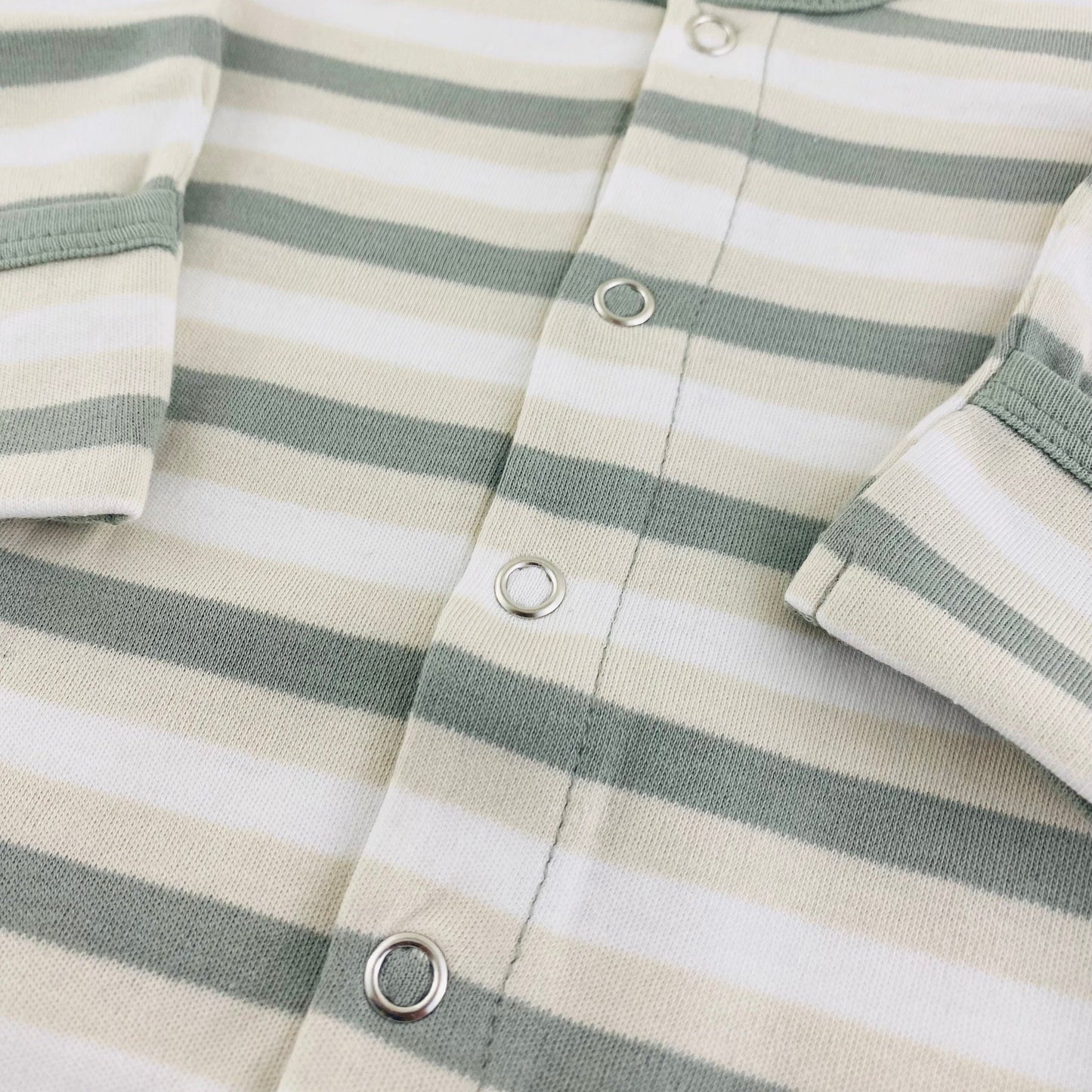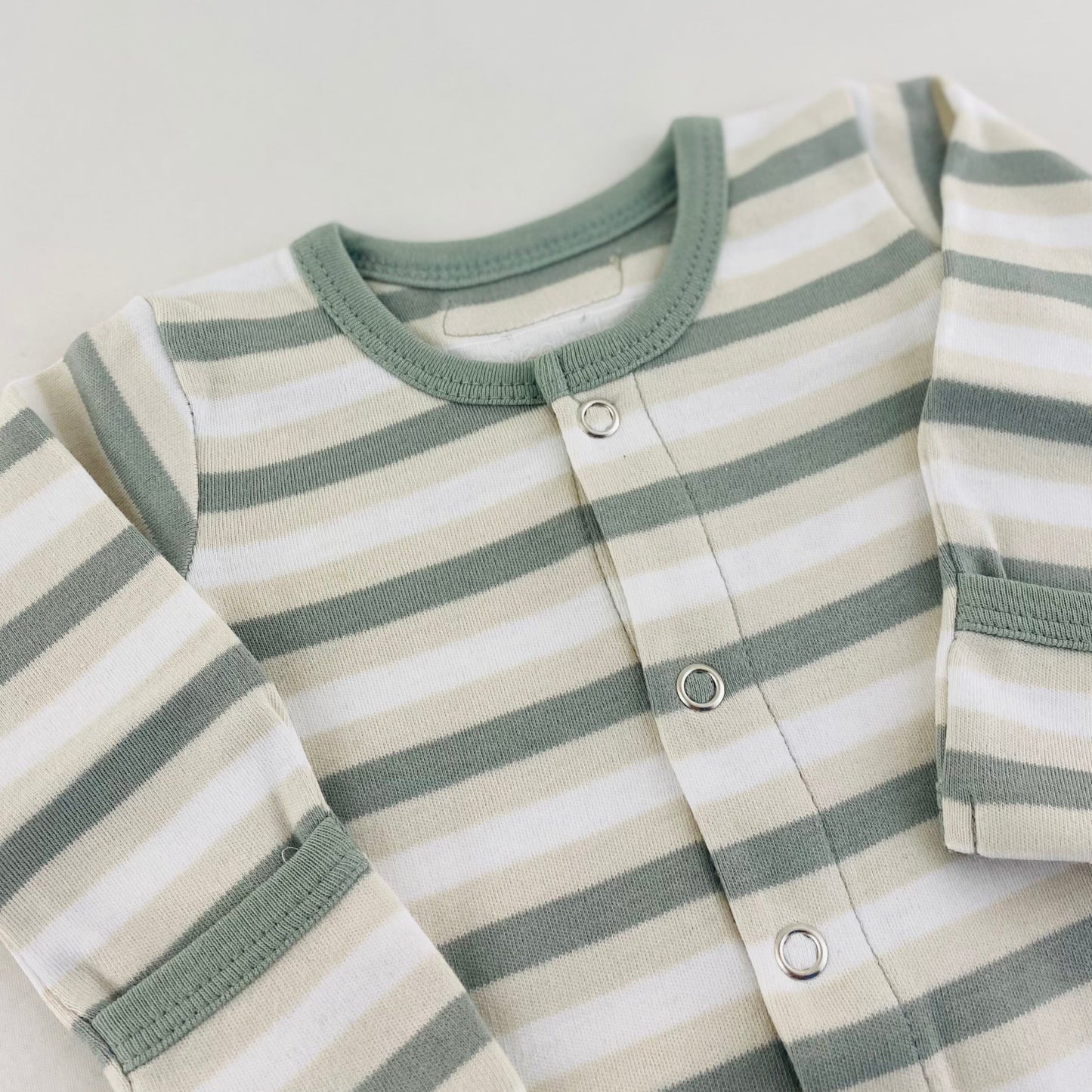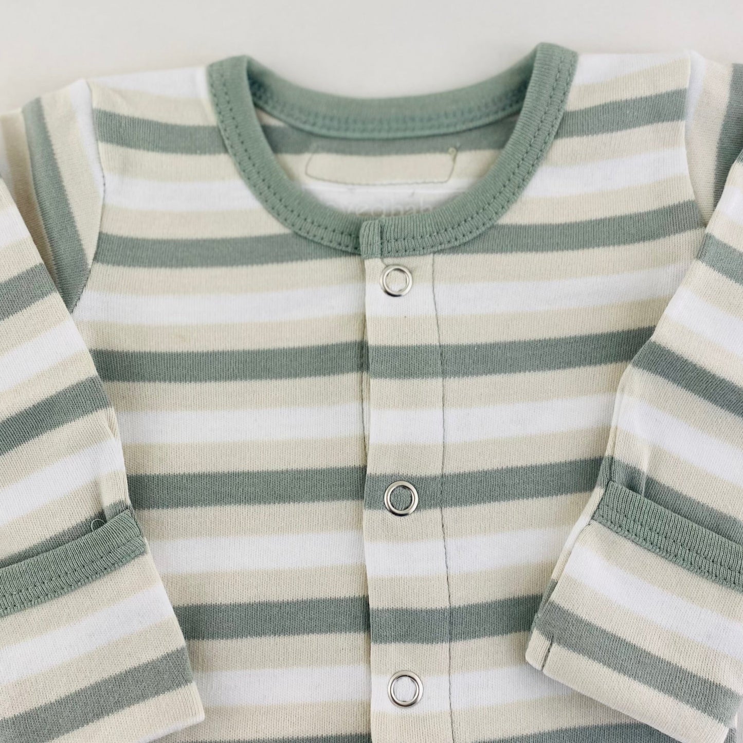 L'ovedbaby Gl'oved-Sleeve Organic Footie - Seafoam Stripe