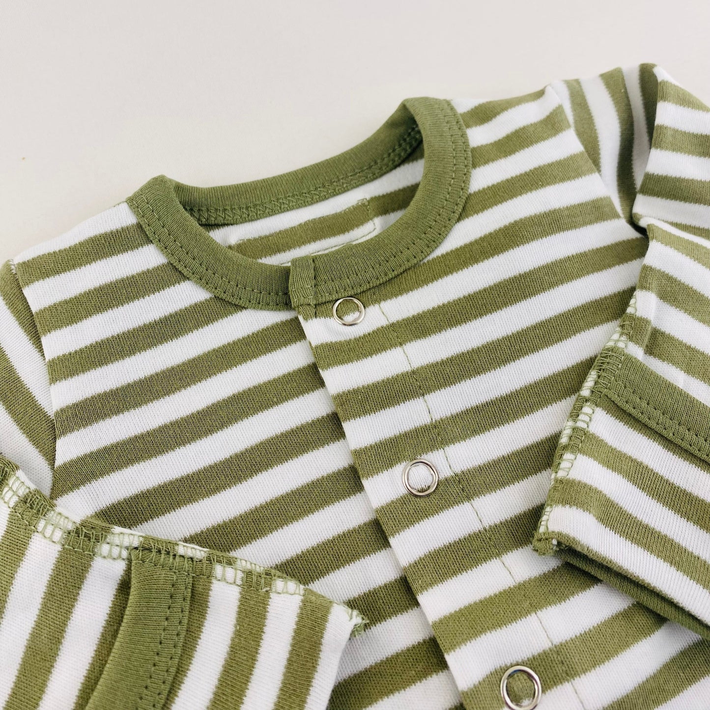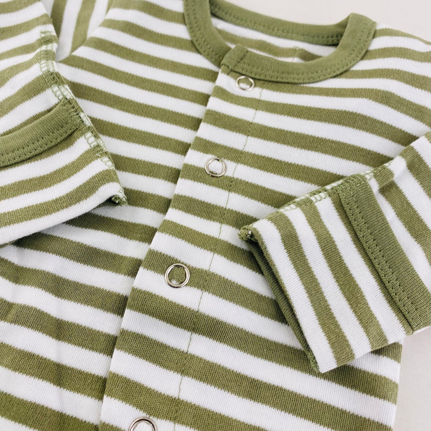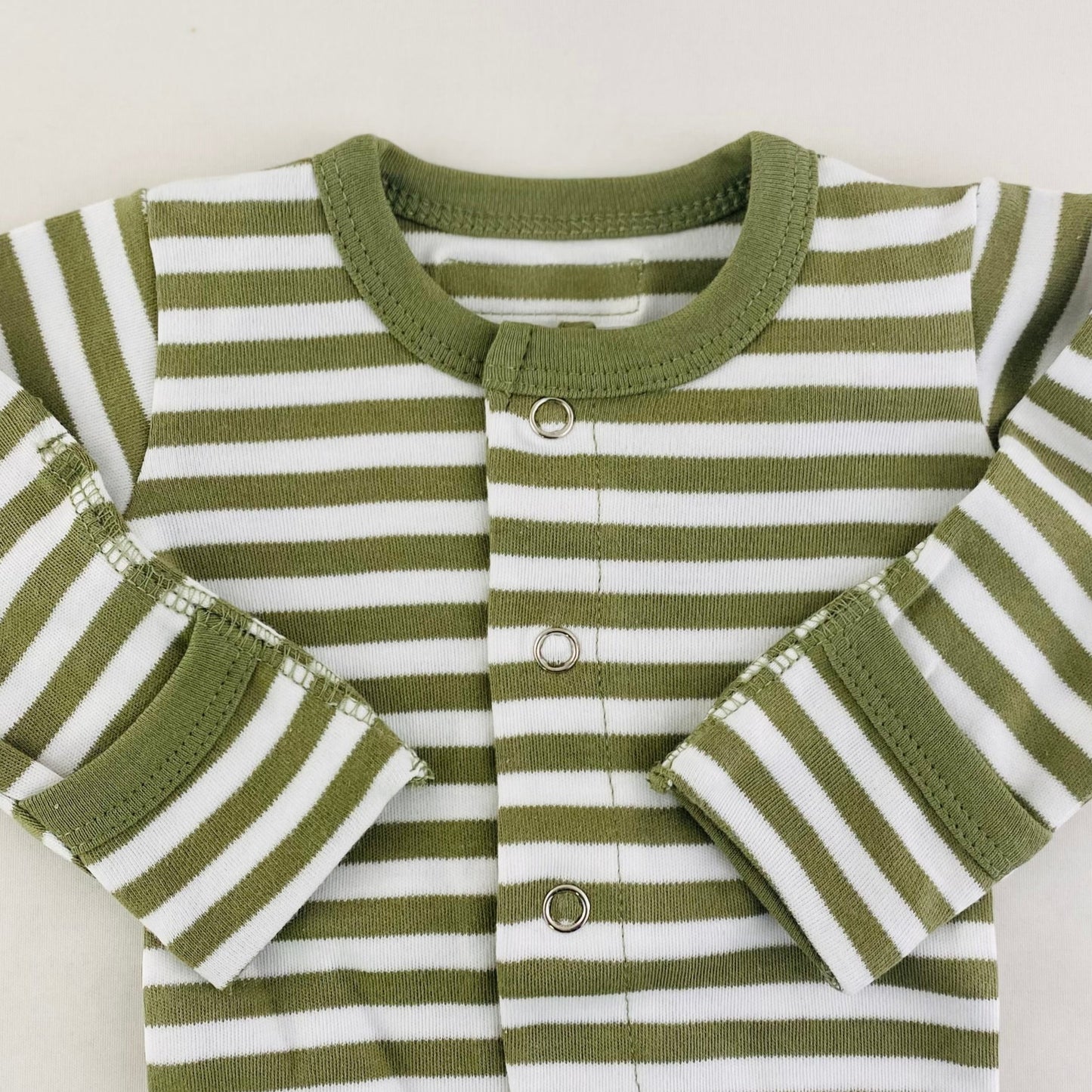 L'ovedbaby Gl'oved-Sleeve Organic Footie - Sage Stripe
