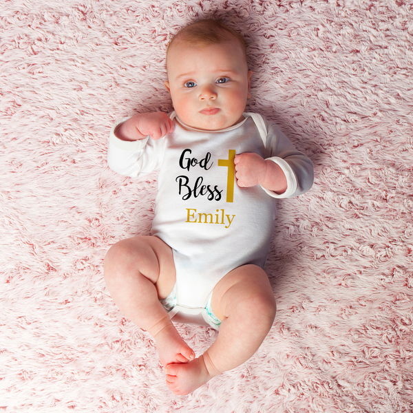[Personalized] Endanzoo Organic Baby Bodysuit - God Blessing Baptism / Christening Day (White)