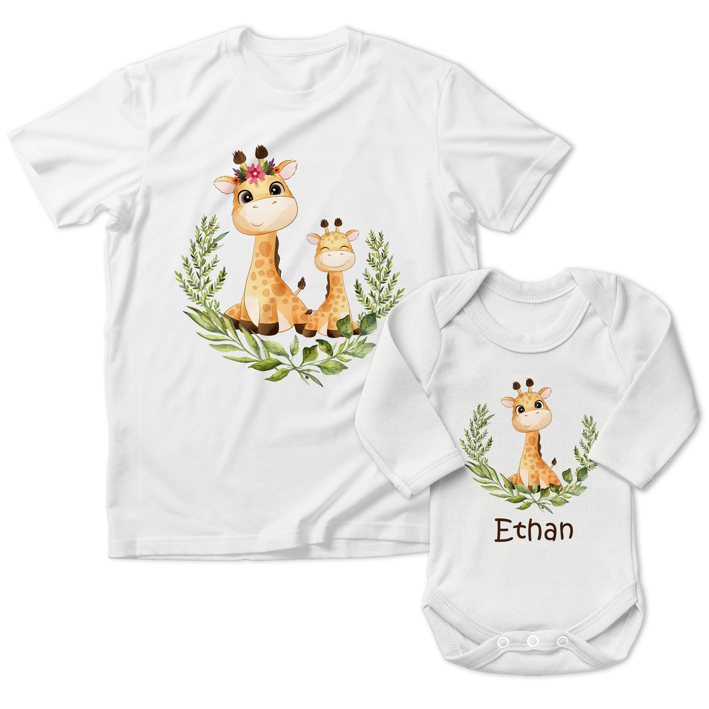 Personalized Matching Mom & Baby Organic Outfits - Giraffe Family (Boy)