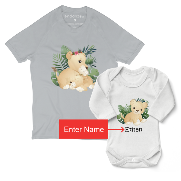 Personalized Matching Mom & Baby Organic Outfits - Lion family