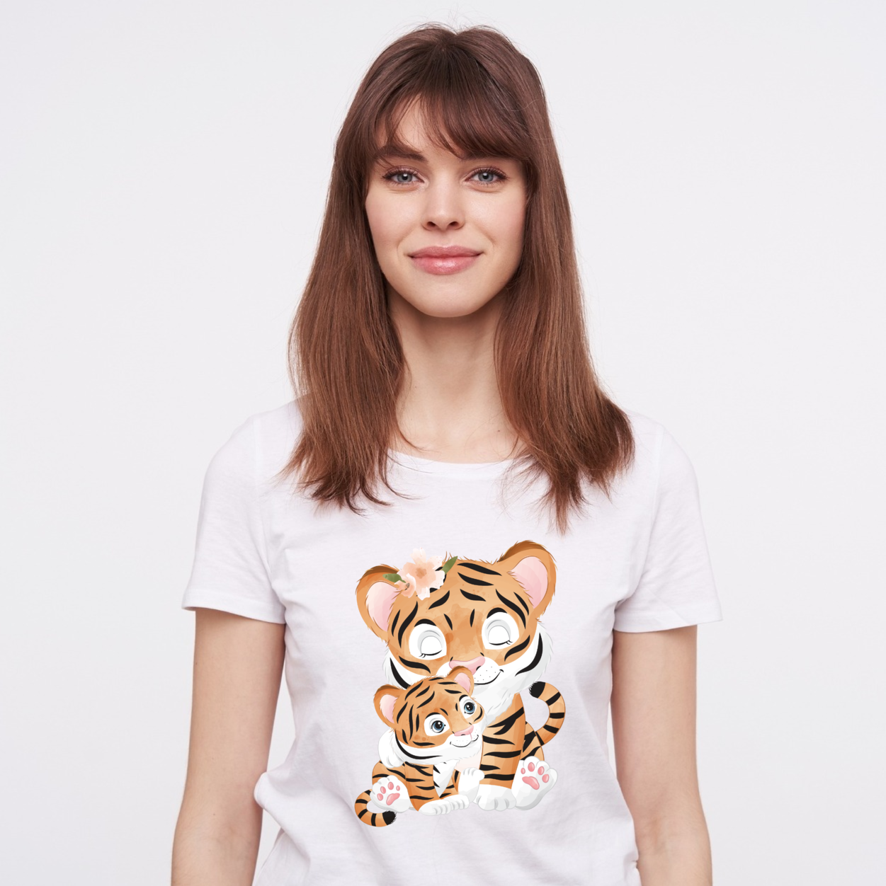 Personalized Matching Mom & Baby Organic Outfits - Tiger Family (White)