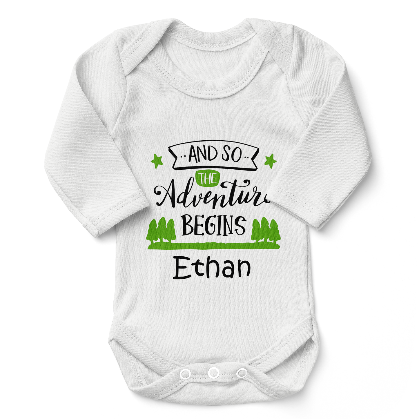 Personalized Organic Baby Bodysuit - Adventure Begins (White / Long Sleeve)